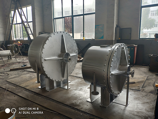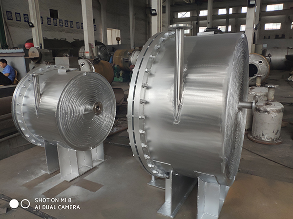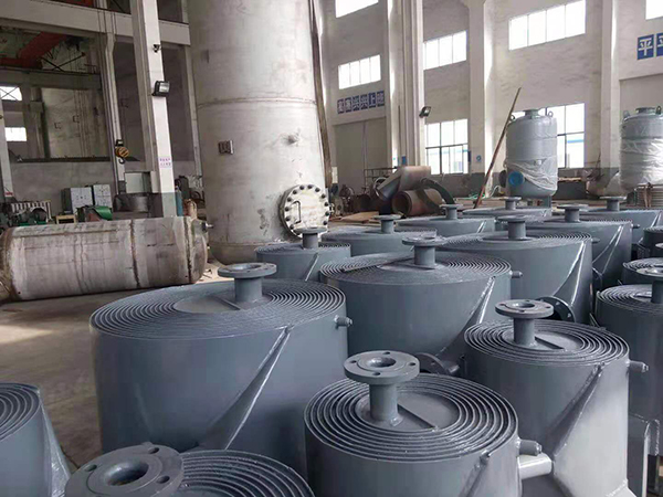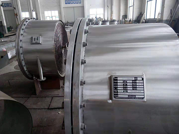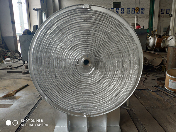 2、在殼體上的接管采用切向結構,局部阻力小,由于螺旋通道的曲率是均勻的,液體在設備內流動(dòng)沒(méi)有大的轉向,總的阻力小,因而可提高設計流速使之具備較高的傳熱能力。